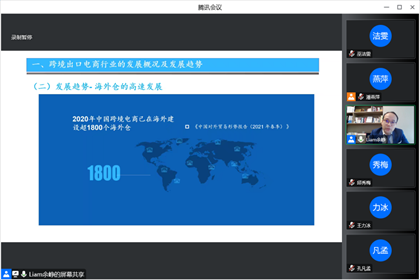 On the afternoon of October 22, 2022, Teacher Pan Yanping invited Yu Zheng, a lawyer from Jincheng Tongda (Shenzhen) Law Firm, to the online class of Innovation and Entrepreneurship Management (Tencent Conference) to share the development and problems of the cross-border e-commerce industry.