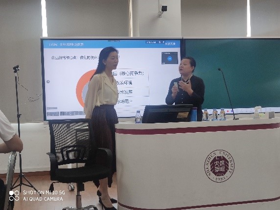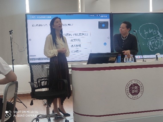 In the class, together with the students, she phased in topics step by step, such as enterprise development strategy, core competence, strategic layout. They also had an in-depth discussion on the online and offline layout in Z-era and on the corporate social responsibility.
