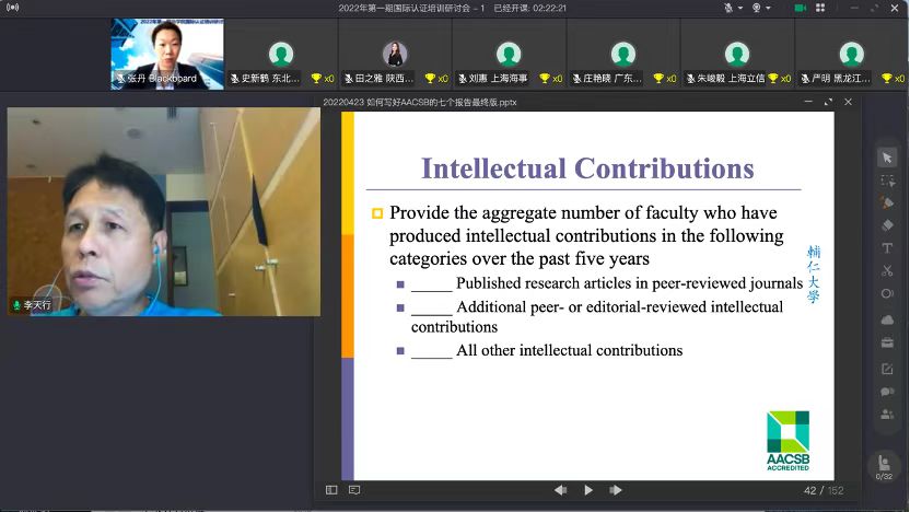 Professor Li Tianxing, the international accreditation expert, interpreted the writing strategies and suggested criterion of the accreditation reports, such as iSER, iSER Update and SER, etc. In addition, some teachers from the already AACSB-accredited schools shared their practice and knowledge.