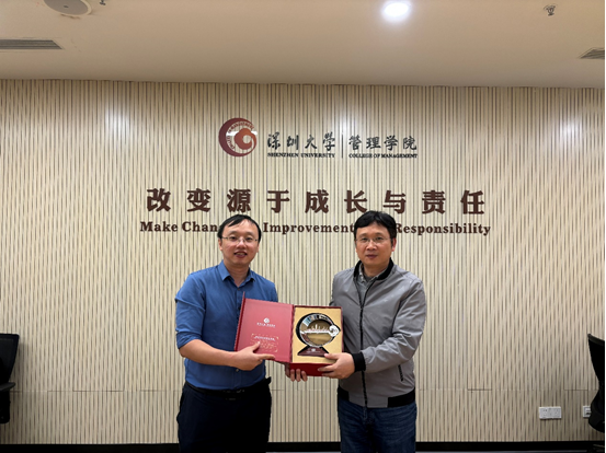 In order to learn the educational experience of the Information Management and Information Systems major in bachelor program, Professor Zhang Dabin and his five colleagues from the School of Mathematics and Information at South China Agricultural University came to our college for exchange on the morning of November 17, 2023. The two sides jointly held a academic construction exchange meeting. The attending teachers of South China Agricultural University included Professor Zhang Dabin from the Department of Information Engineering, Associate Professor Yu Heping (vice chair of the Department of Information Engineering), Zhang Yongwei, Chen Weiying, Huang Wenling, and Deng Jin. Representatives of teachers from Shenzhen University included Associate Professor Feng Yuanyue (director of the Department of Management Science), Associate Professor Yang Chen (Assistant Dean), Associate Professor Lai Xiaofan (vice director of the Department of Management Science), as well as Geng Shuang, Wang Yang and Song Yinuo.